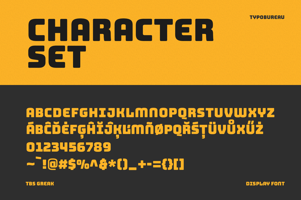 TBS Greak is an All Caps bold round font for display purpose inspired from 60s to 90s vibes Retro font, this font support multilingual languages and free update feature. published by Typo Bureau Foundry.